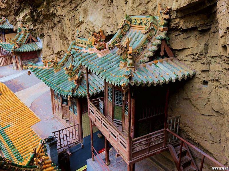 全寺为木质框架式结构,有殿琮楼阁40 间,其实悬空寺不大,最值得惊叹的是它依靠榫接结构,嵌入崖内而不倒。