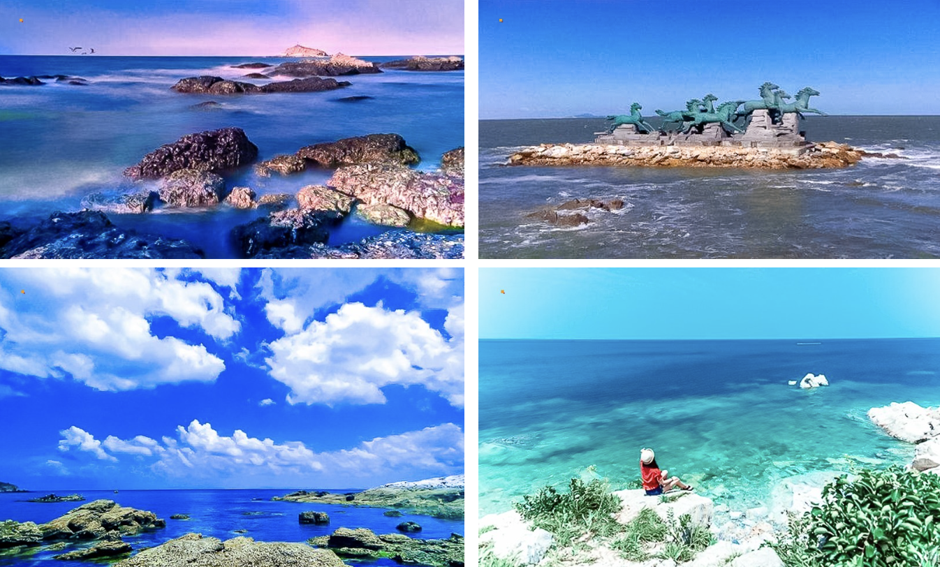 - 下午|集合前往半月湾及九丈崖参观,半月湾可欣赏月牙湾美景,拾到五颜六色晶莹剔透的球石,看动感的海豚表演,非常有趣。参观结束后到九丈崖看日落,站在高岗上放眼远方竖立在海岸线上一闪一闪的灯塔,别有一番特色。参观结束后返回渔家小院。