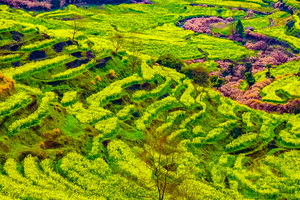篁岭油菜花海分别有古村梯田花海与高山梯田花海片区。梯田花海随山就势,被网友成为“上帝的指纹”、“全球十大最美梯田”。海拔约为700米的栖霞古寺将成为赏花的最高观赏点,游客可乘坐梯田观光缆车直达最高观赏点,也可以在百米高空玻璃栈桥——垒心桥上欣赏脚下的美景,还可乘坐溜索从垒心桥桥头一直滑到三号观景台,沿途穿过万亩黄绿梯田花海,赏花体验更为壮观。篁岭打造了一条全长3公里的最美健身路线,游客可以一边打卡拍照,一边徒步运动,全方位感知篁岭最美的春天。