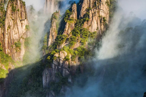 三清山兼具“泰山之雄伟、黄山之奇秀、华山之险峻、衡山之烟云、青城之清幽”。“奇峰怪石、古树名花、流泉飞瀑、云海雾涛”并称自然四绝。三清山也是道教名山,山上的三清宫香火十分旺盛。在偌大的三清山中,你可以乘缆车尽赏山间美景,行走栈道,看松林阵阵,云雾霭霭。早可看日出,夕可赏晚霞,待薄雾起时,身处深山里,还真有那么些仙山的意味。