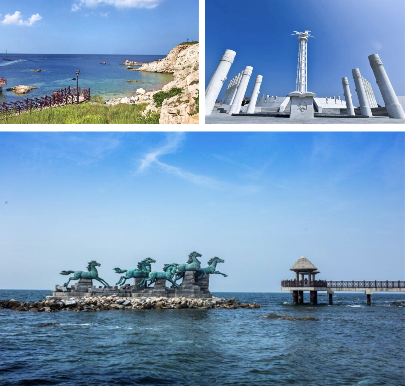 - 上午|集合前往烟台养马岛,上午我们换乘环岛摆渡车进入养马岛游览。推荐路线:天马广场-海水浴场-海螺洞穴-御笔苑-金蝉石-观景台-秦风崖-海岛日记-莲花夕照-西山观景台。
