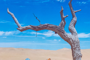 - 早餐后,集合前往乌海湖游览打卡乌海湖、网红枯树、网红沙漠公路、乌海沙漠!
