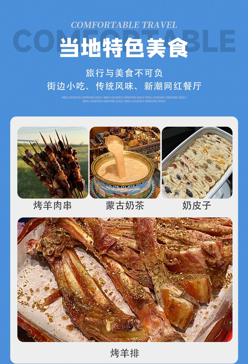 3)用餐:共含五餐(D1迎宾下马酒晚宴、D2早餐、D2中餐雪地铁锅炖、D2晚餐特色蒙餐、D3早餐);