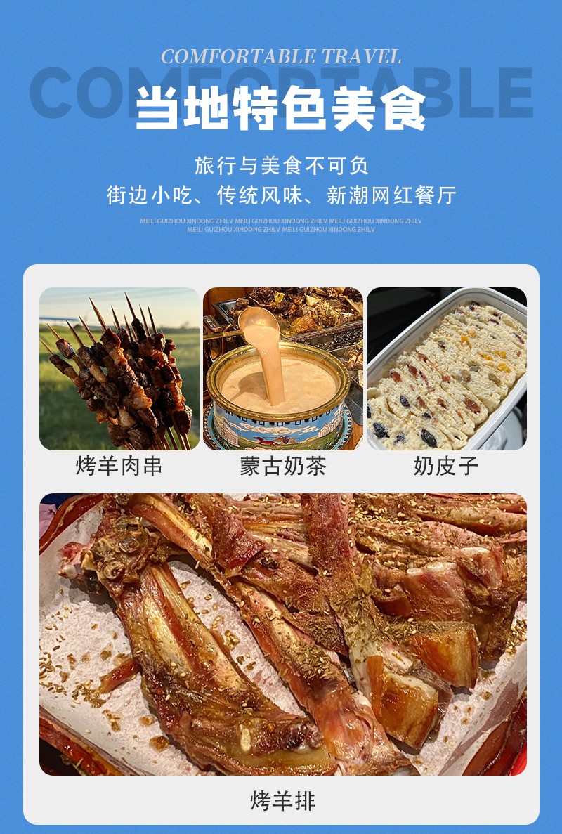 3)用餐:共含五餐(D1迎宾下马酒晚宴、D2早餐、D2中餐雪地铁锅炖、D2晚餐特色蒙餐、D3早餐);