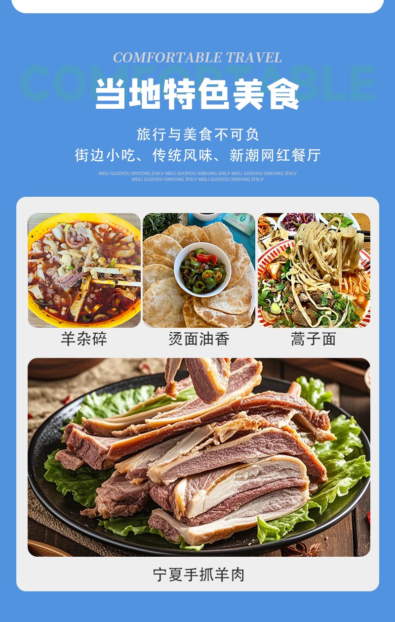 一早我们继续出发,当天到达美丽的塞上江南、神奇宁夏省会城市——银川市,到达银川办理入住后自由活动,如您不知去哪玩,可参考以下几个地方打卡游玩【览山公园】拥有仿古罗马露天剧场的阶梯看台,日落时分金色光线洒在米黄色墙体上,与阅海湖、贺兰山远景同框,是银川必拍机位;【鼓楼玉皇阁】鼓楼始建于清,是银川老城地标,玉皇阁是明清古建筑群,登楼可俯瞰老城街巷,夜景灯光很美;【怀远观光夜市】银川人气最高的夜市,紧邻宁夏大学,汇集西北美食:辣糊糊、羊蹄、沙葱牛肉饼、卷凉皮、八宝茶等,可以体验一把地道的回族清真生活。